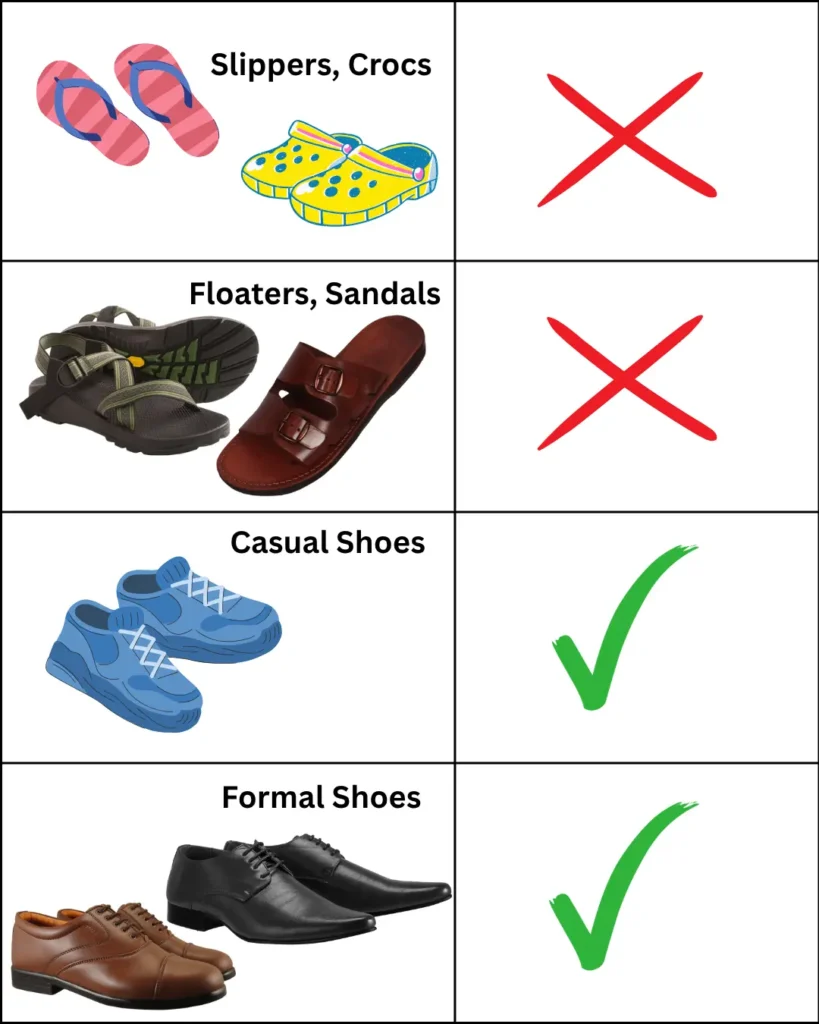 *Business casuals include Pants, Trousers, Shirts, Polo neck T-Shirt with Blazer.